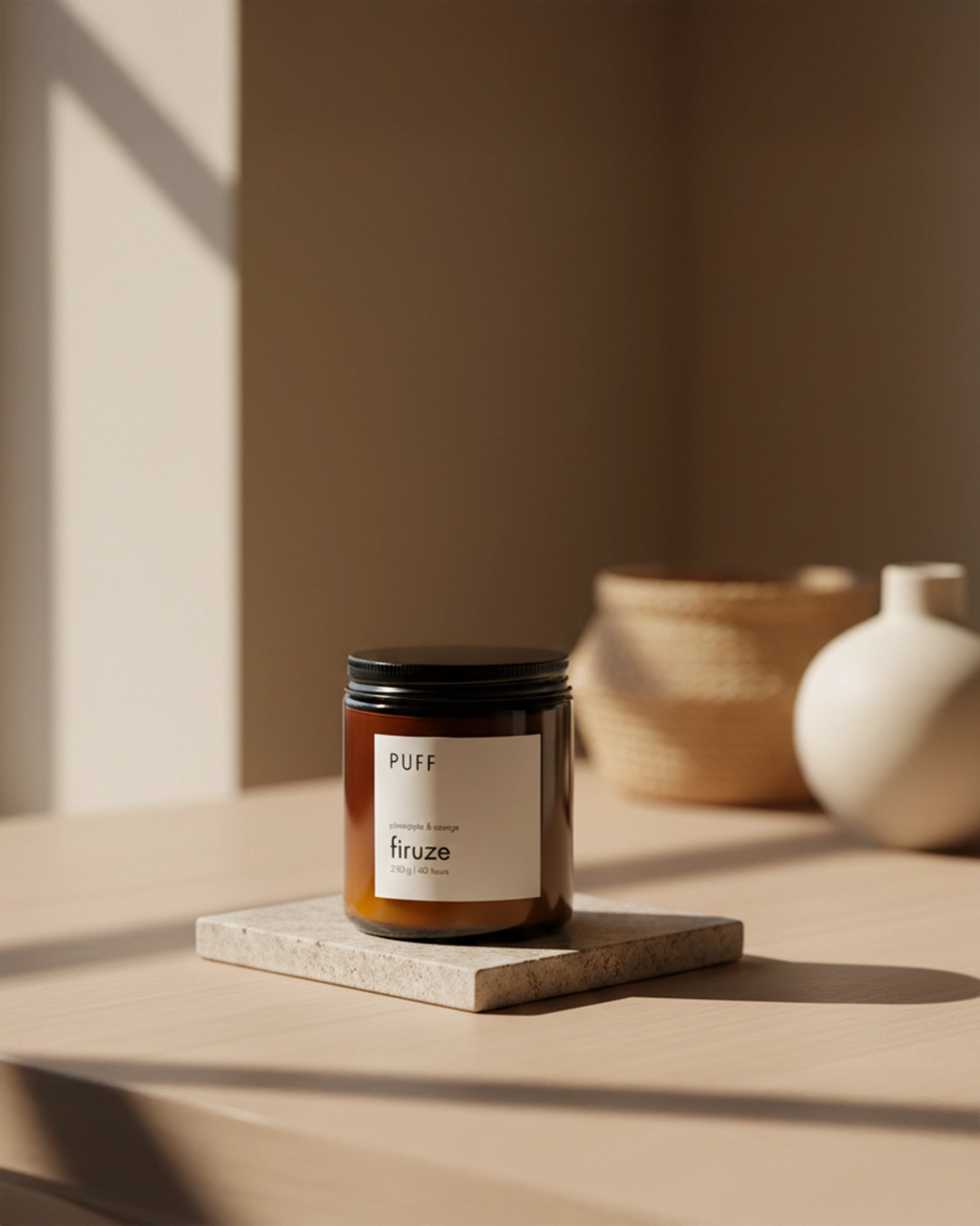 Gökyüzünü kaplayan gri bulutları dağıtmak, ruhunuzdaki kış ağırlığını atmak ve evinize pırıl pırıl bir güneş açtırmak için bazen tek bir kibrit çakmak yeterlidir. Firuze Soya Mumu, adını aldığı o canlı turkuaz rengin enerjisini, doğanın en mutlu, en renkli ve en sulu meyveleriyle birleştiriyor. Turkuaz bir denizin kıyısında, elinizde buz gibi, egzotik bir meyve kokteyliyle güneşlendiğinizi hayal edin… İşte Firuze, tam olarak bu anın kokusudur. Puff Candles olarak, evinizde adeta bir “vitamin deposu” etkisi yaratacak bu özel karışımı, dekoratif amber rengi cam kavanozda evinize sunuyoruz.